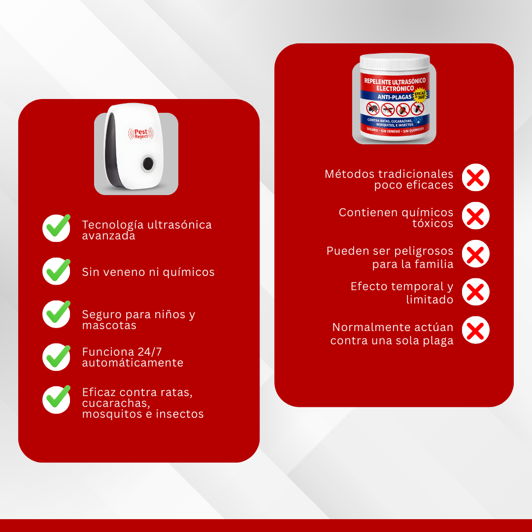 ¡Despídete de cucarachas, mosquitos, roedores y otros intrusos de una vez por todas con el REPELENTE ULTRASÓNICO EXTERMINADOR DE PLAGAS ELÉCTRICO! 🛑🐜